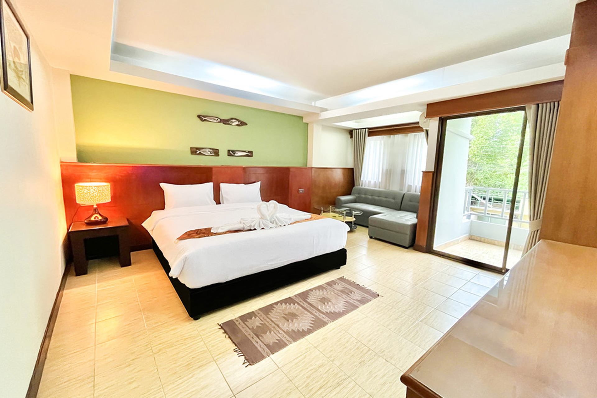 Deluxe King Room A studio with a comfy king size bed, there are also a homey little balcony for Lanta Night Market View. Room Amenities [email protected] May 28, 2025